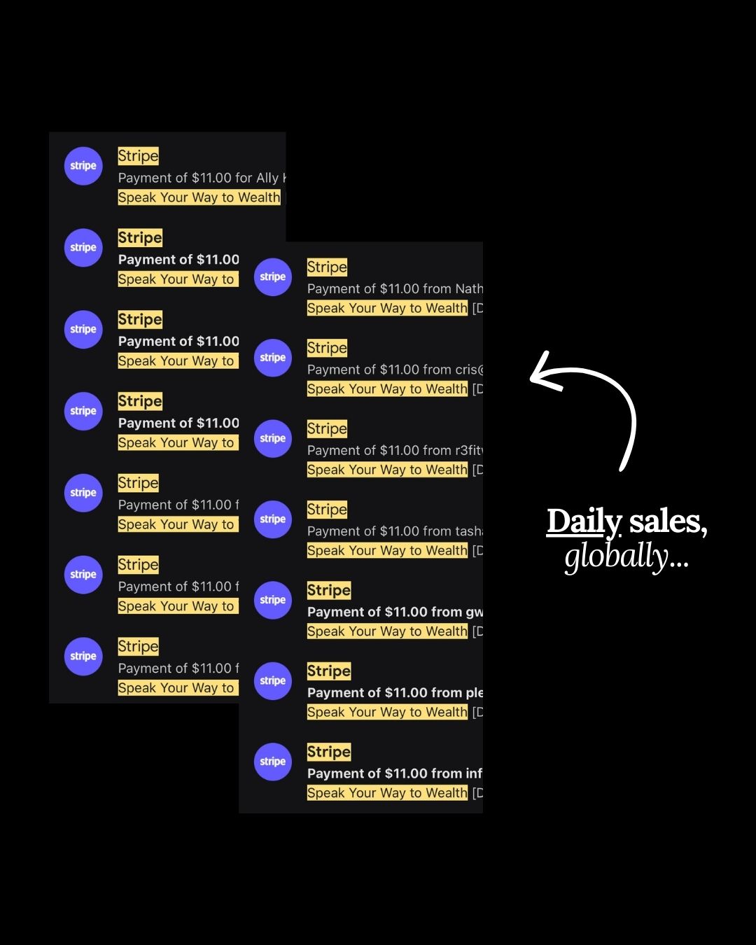 Your Silent Sales System™ creates daily sales, repeat buyers, and ascension into your signature authority offers — where buyers purchase once, come back again, and effortlessly upgrade into your high proximity offers & highest-ticket spaces — so you’re waking up to Stripe notifications, upgrades, and applications without living on social media or being "on" 24/7.